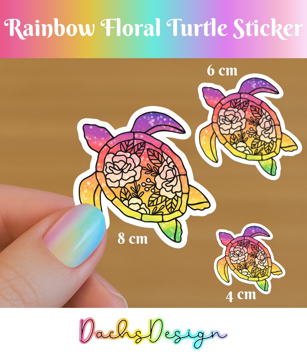 Floral Rainbow Turtle Waterproof Vinyl Sticker